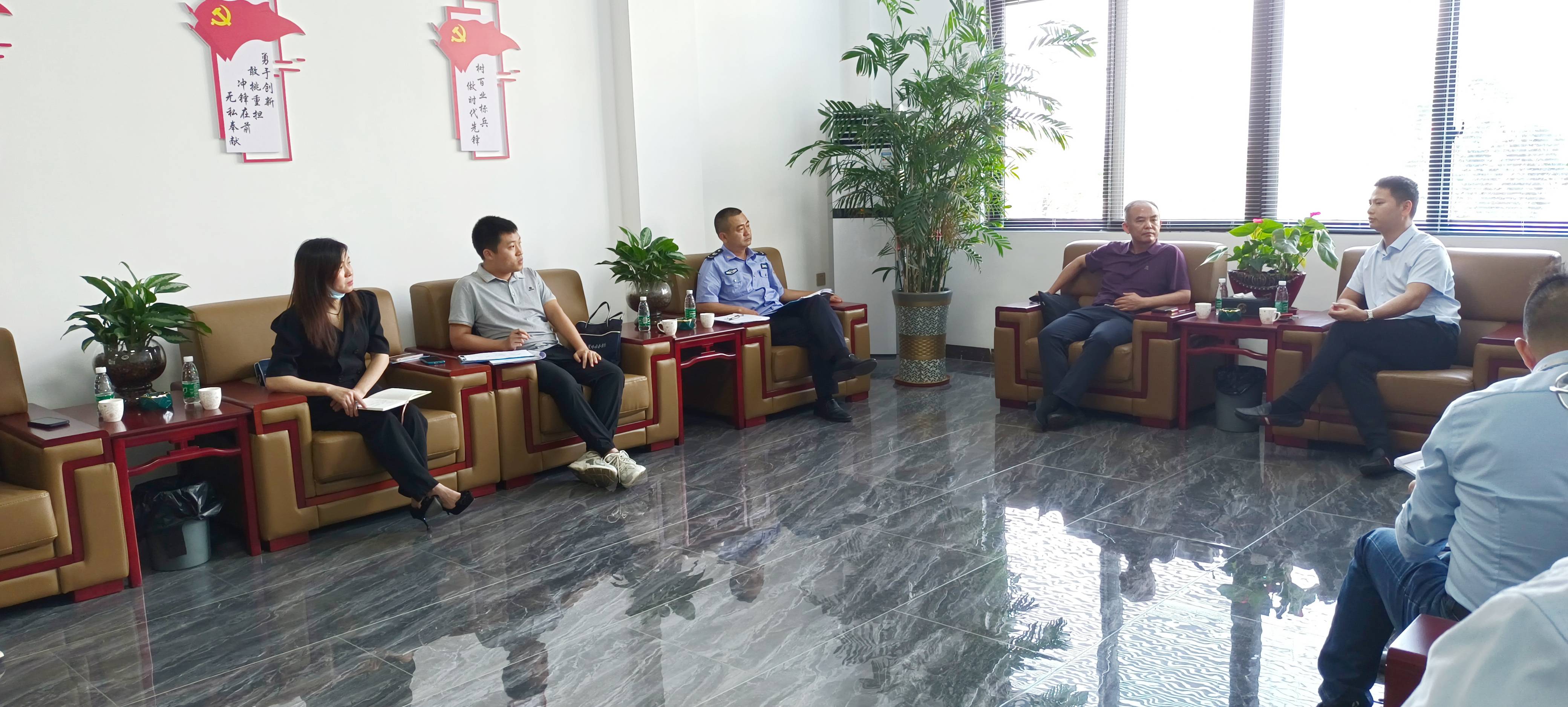 2023年5月25日下午,蕉嶺縣人社局黨組書記、局長(zhǎng)江斌、縣人社局副局長(zhǎng)王建強(qiáng)帶領(lǐng)社保局、勞動(dòng)監(jiān)察執(zhí)法大隊(duì)、就業(yè)中心工作人員一行到訪海龍化工總部,開展2023年“人社局長(zhǎng)千企行”暖企助企調(diào)研活動(dòng),傾聽企業(yè)所需所盼,為企業(yè)排憂解難。公司總經(jīng)理賴仕海、副總經(jīng)理龍偉國(guó)、人力資源總監(jiān)余佛龍、財(cái)務(wù)經(jīng)理陳杏娜出席此次座談會(huì)。