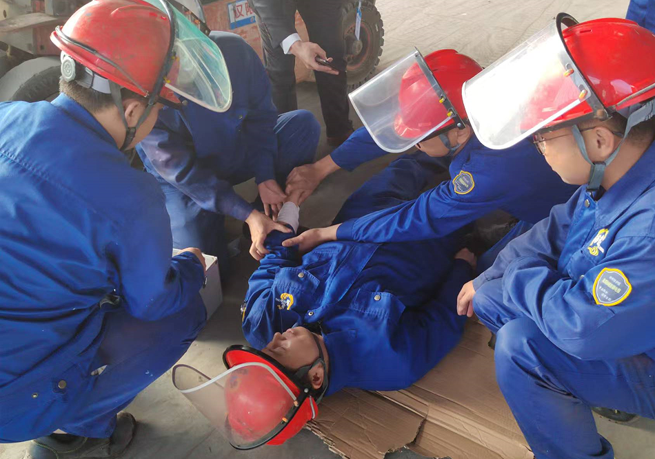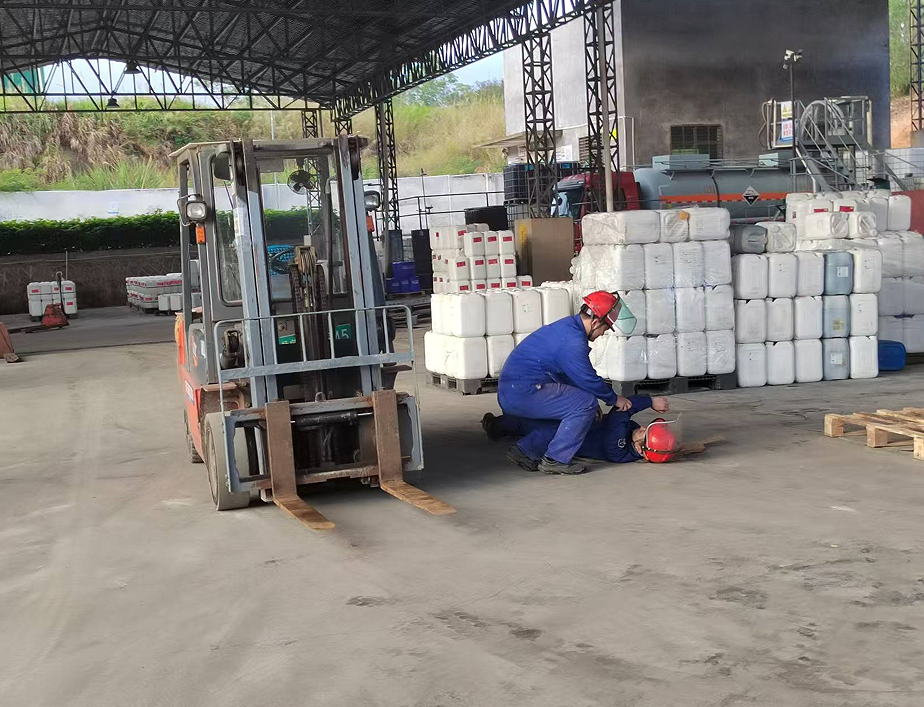 叉車司機王根立即停止作業(yè),并大喊:“撞人了,撞人了”,周邊同事聽到后,迅速過來幫助受傷人員躺平,并上報車間主任,車間主任接報后,立即組織救援人員趕赴現(xiàn)場,查看受傷人員傷勢情況,查看到傷勢比較嚴重,立即組織人員進行簡單包扎處理,簡單處理后,使用擔(dān)架抬傷員到公司車輛并送到醫(yī)院就診。