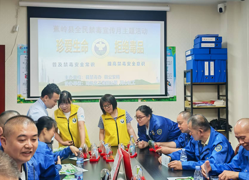 為切實(shí)提高廣大職工識(shí)毒、防毒、拒毒意識(shí),增強(qiáng)廣大職工自覺(jué)抵制毒品的能力,結(jié)合今年全民禁毒宣傳月的“健康人生、綠色無(wú)毒”的主題,6月10日,蕉嶺縣禁毒辦、蕉嶺縣公安局在海龍化工廠區(qū)開(kāi)展“珍愛(ài)生命,拒絕毒品”為主題的禁毒宣傳活動(dòng)。