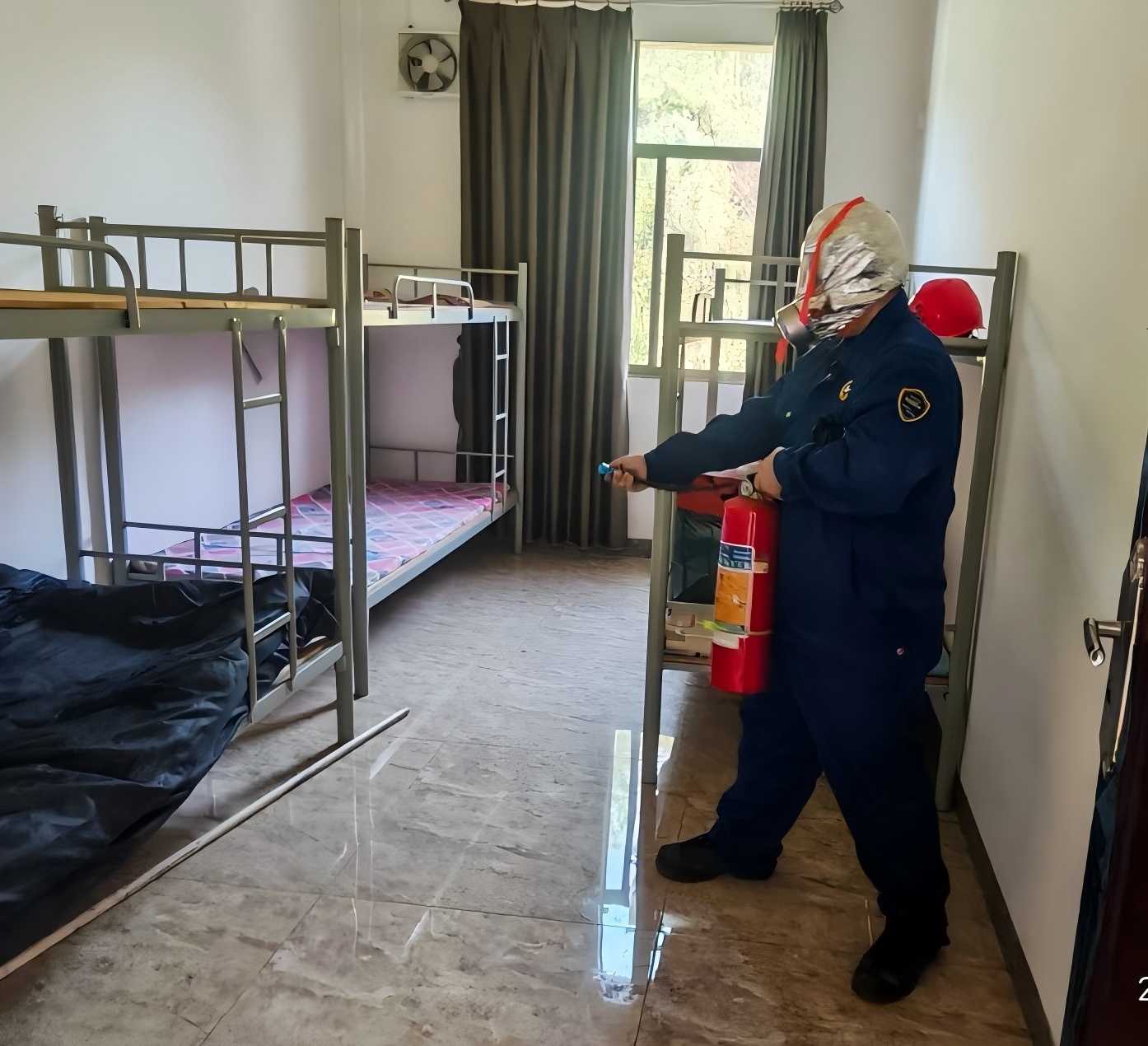 排查人員趕赴現(xiàn)場(chǎng)后發(fā)現(xiàn),由于過載使用排插,導(dǎo)致起火,并點(diǎn)燃床單被褥,宿舍內(nèi)午休人員正在熟睡,吸入濃煙后昏迷。立即向中控值班人員反饋情況,隨后中控室立即向車間主任匯報(bào)險(xiǎn)情,車間主任接報(bào)后立即啟動(dòng)現(xiàn)場(chǎng)級(jí)應(yīng)急預(yù)案并趕赴現(xiàn)場(chǎng)指揮救援。