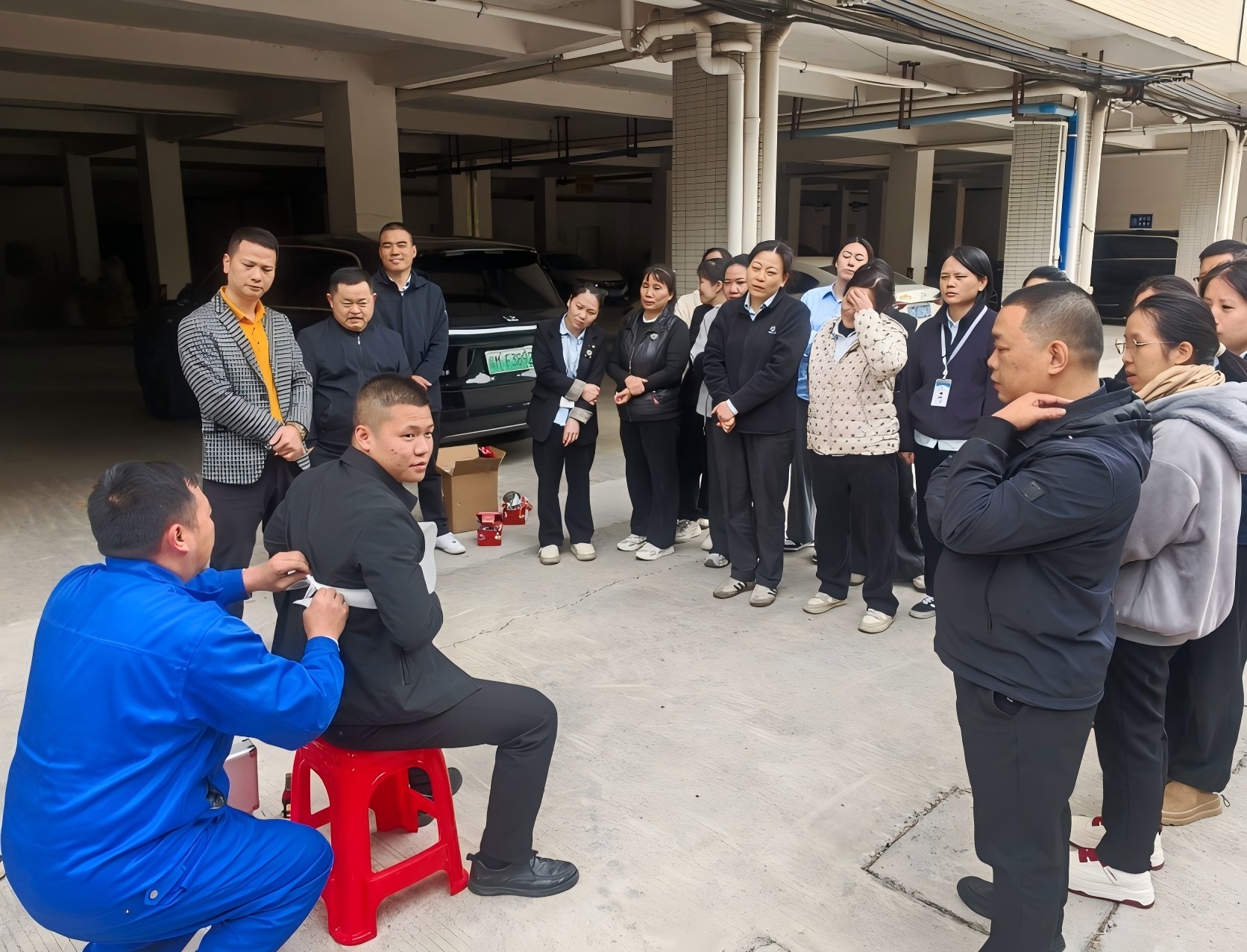 向大家講解當(dāng)出現(xiàn)傷口時(shí)如何進(jìn)行有效處理及三角巾的包扎方式等,大家都認(rèn)真觀摩學(xué)習(xí)。